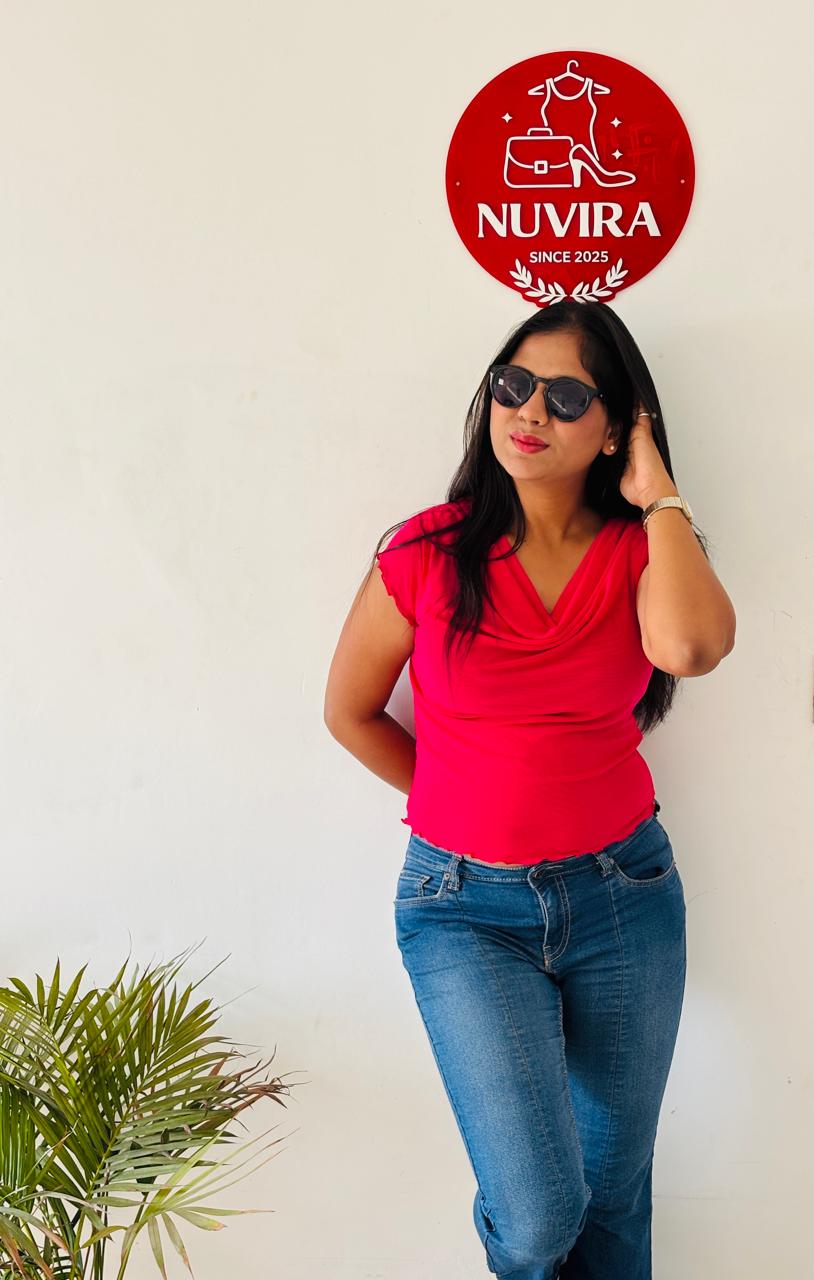 Add a pop of color to your wardrobe with this elegant magenta cowl neck top. Designed with a soft draped neckline and flattering fit, this top offers a perfect balance of style and comfort. The cap sleeves and delicate lettuce-edge hem add a feminine touch, while the lightweight, stretchable fabric ensures all-day ease. Ideal for casual outings, office wear, or evening get-togethers, this versatile top pairs effortlessly with jeans, trousers, or skirts.